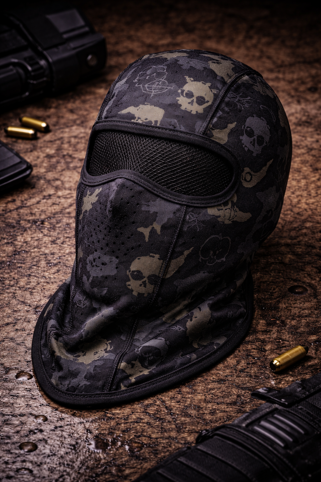 Ciemne pseudo-camo z ukrytymi motywami czaszek, krzyży celowniczych, błyskawic i ostrych znaków X nadaje jej klimat, jakby została wyciągnięta prosto z arsenału kogoś, kto działa po drugiej stronie prawa.